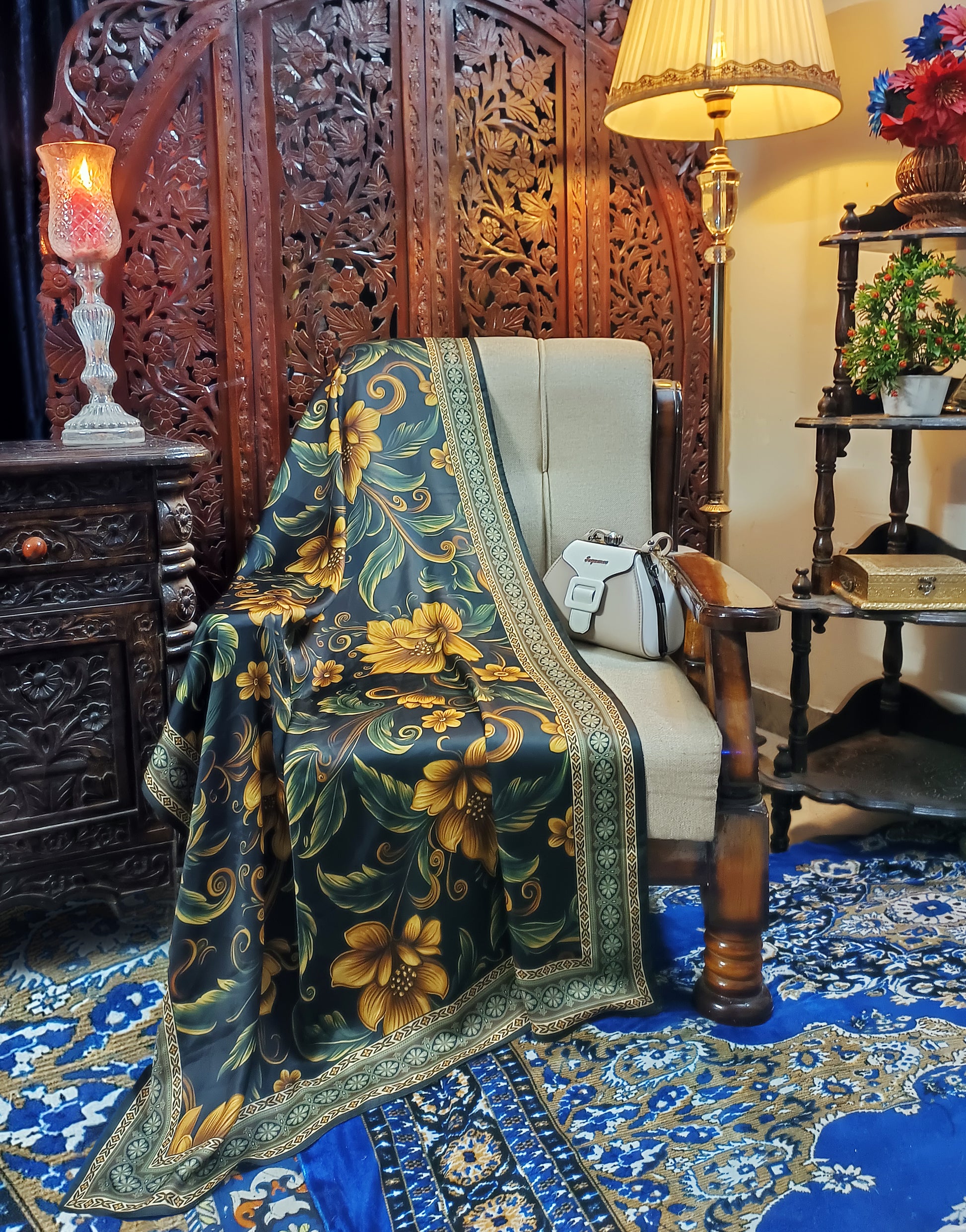 Experience the eternal charm of nature with our exquisitely designed stole, “Gul-Barg.” Crafted from luxurious Armani satin, this stole boasts a shiny, silky texture that feels soft against the skin and drapes effortlessly with grace.
